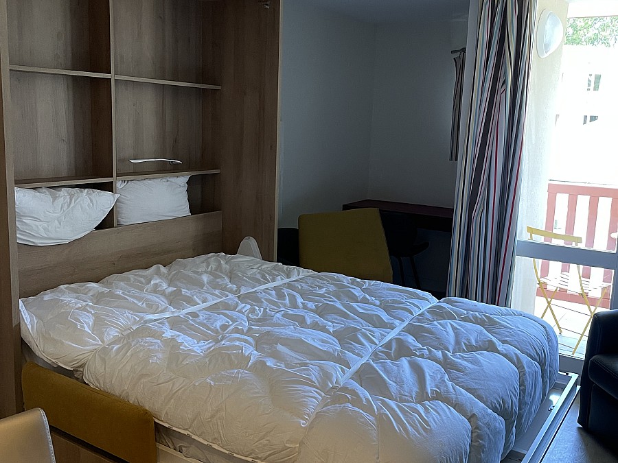 - Un lit double : il possède un coffre permettant de ranger les valises, sac, ... et laisser ainsi plus d'espace dans l'appartement