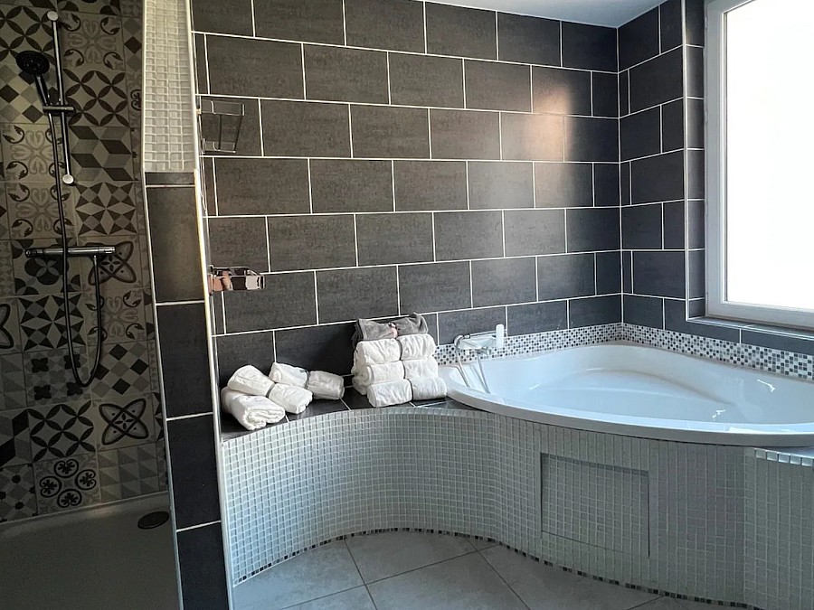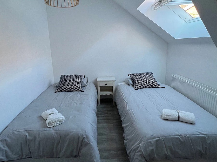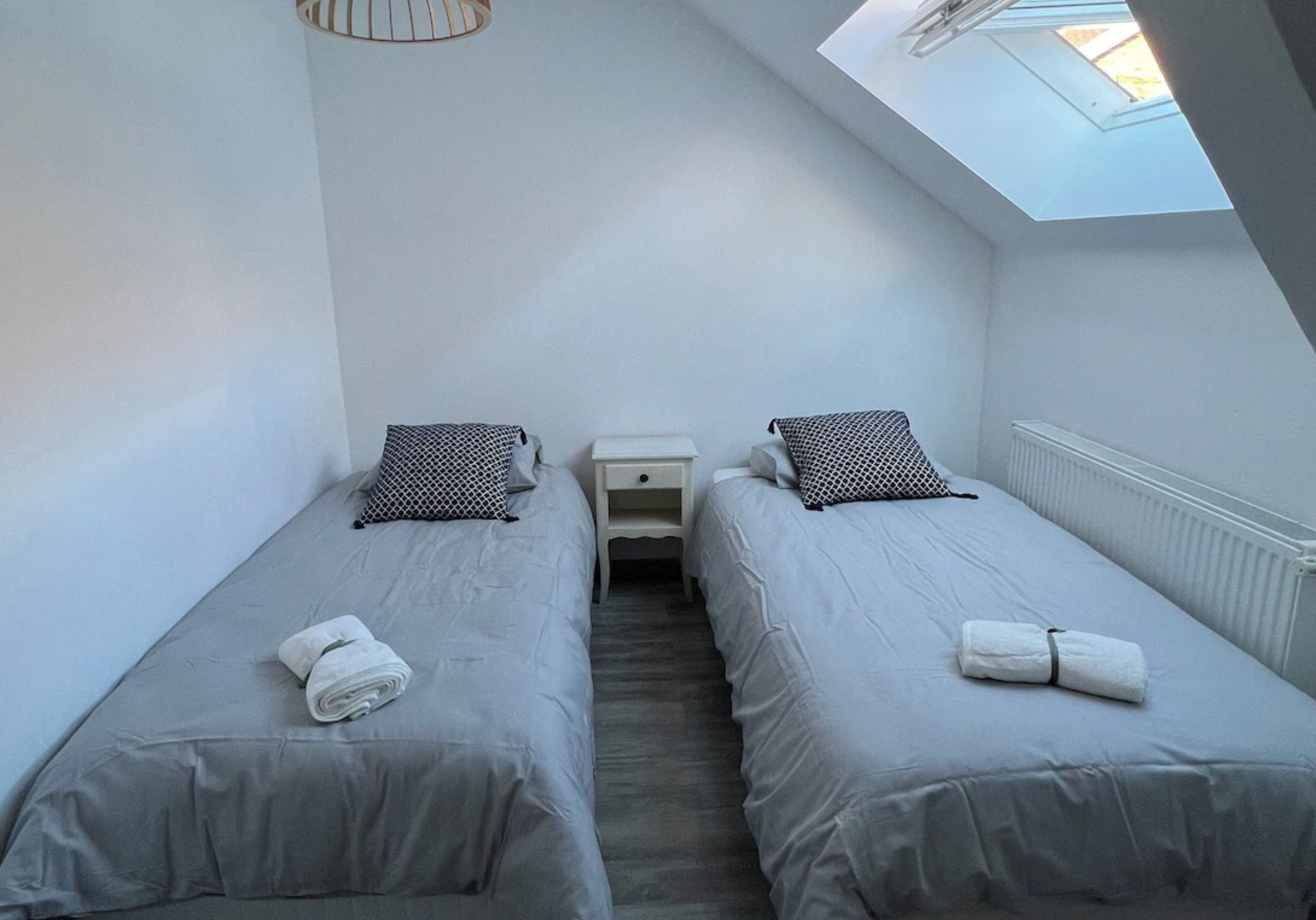 Au 1er étage se trouvent 3 chambres : la première avec 1 lit 2 pers (140 x 200), la seconde avec 1 lit 2 pers (160 x 200) et la troisième avec 2 lits 1 pers (80 x 190).