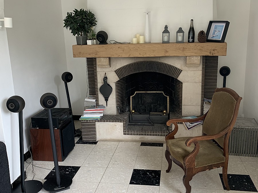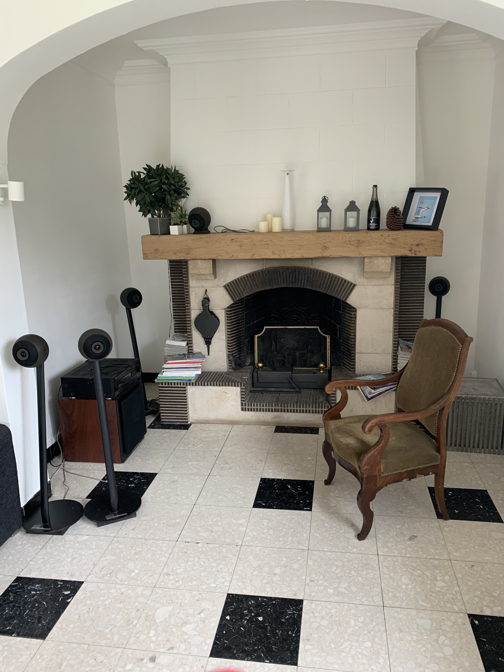 grande pièce de vie, salle à manger, petit salon avec cheminée