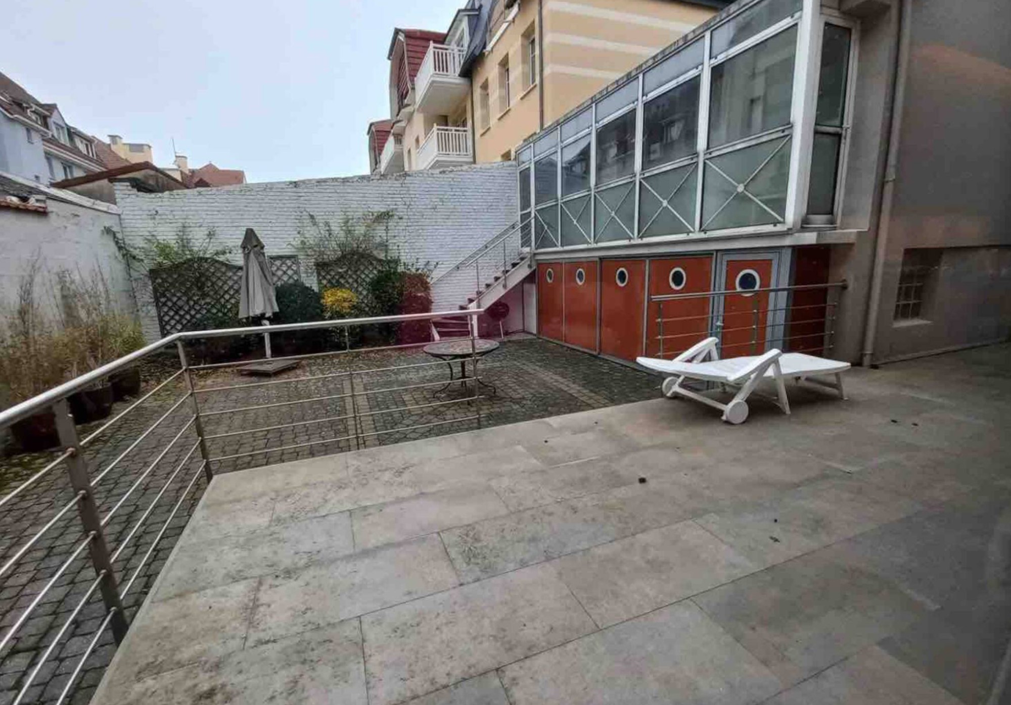 Une cour intérieure donne accès à une chambre et une salle de bain, indépendantes du logement principal.