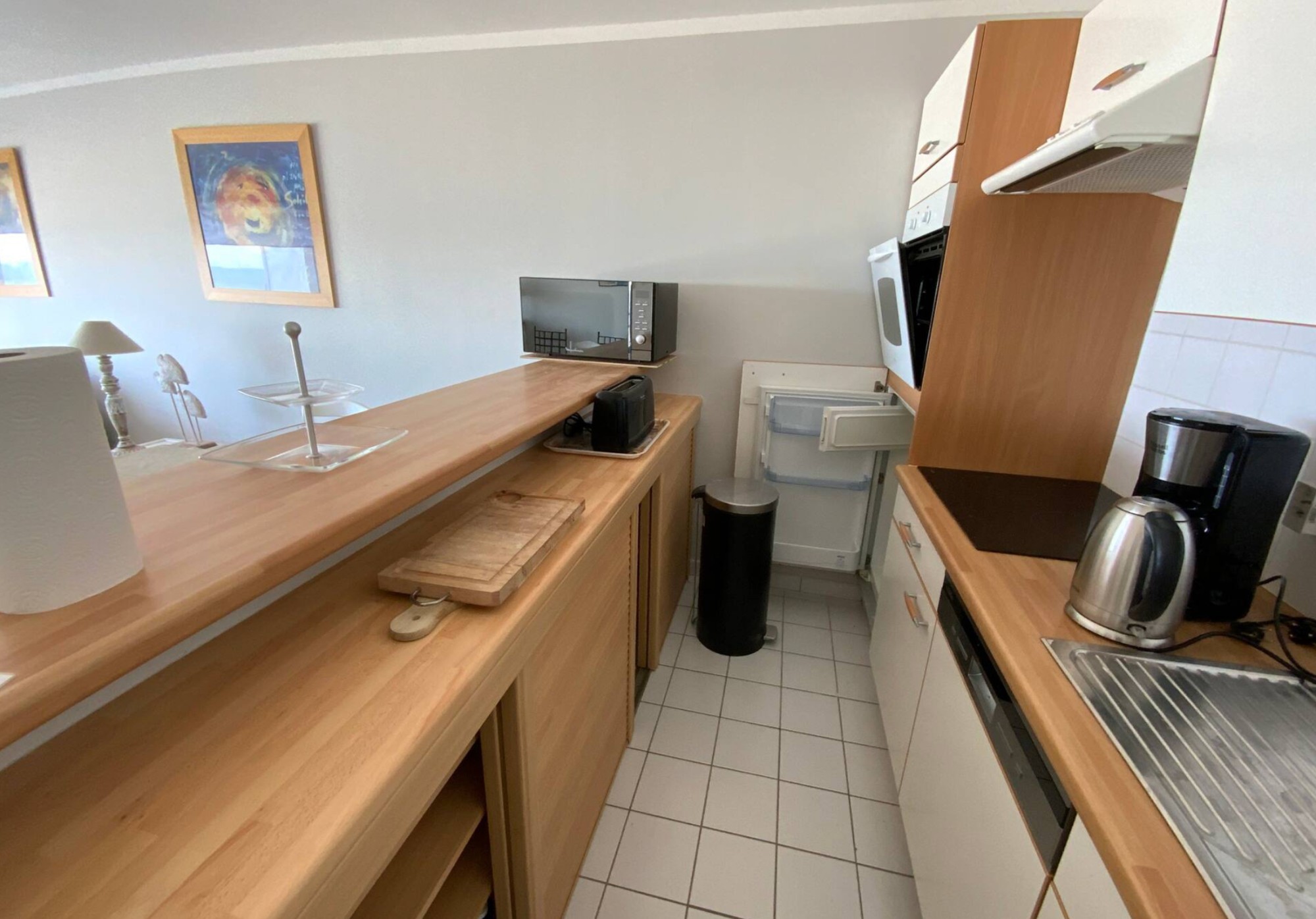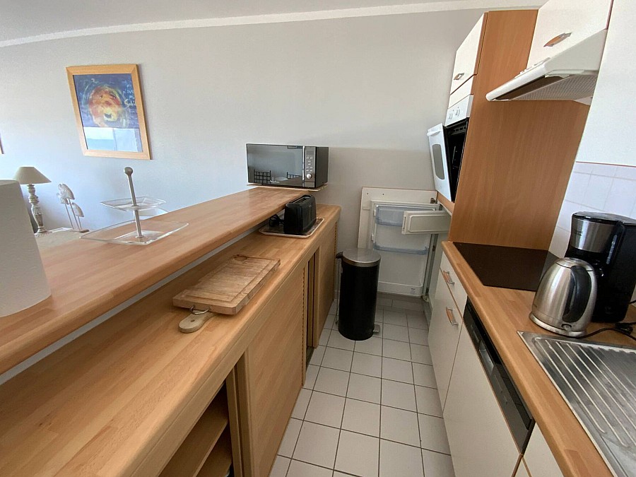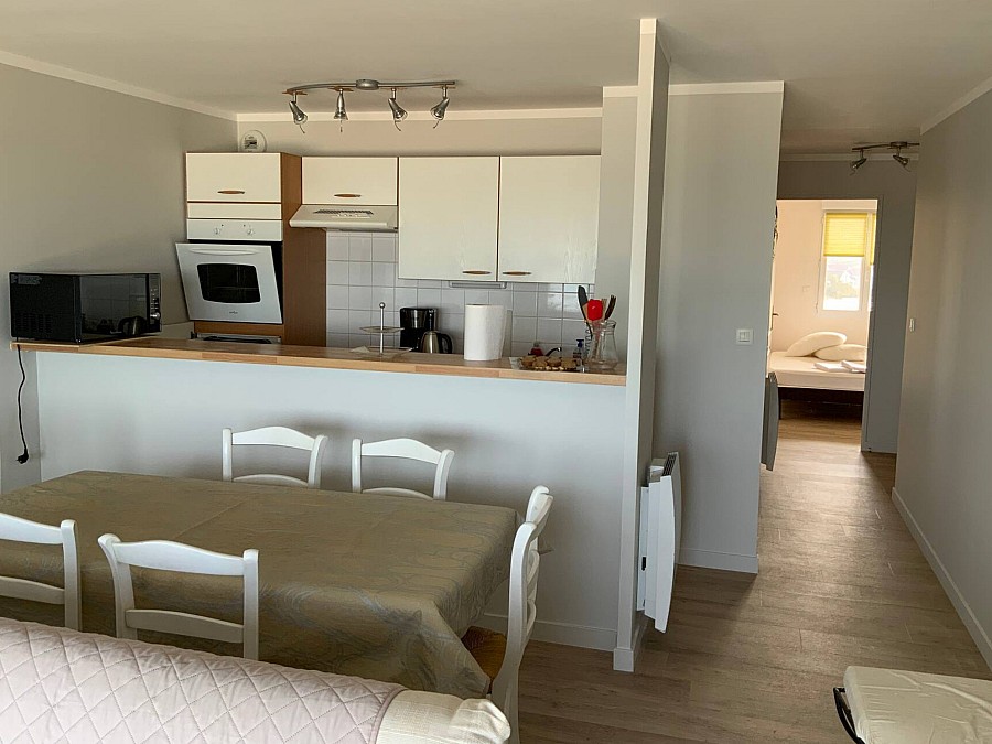Cuisine , salle a manger et salon sont face mer .