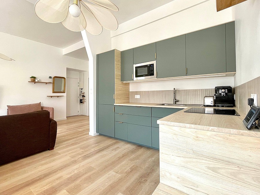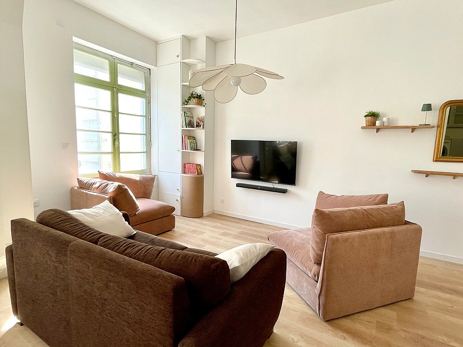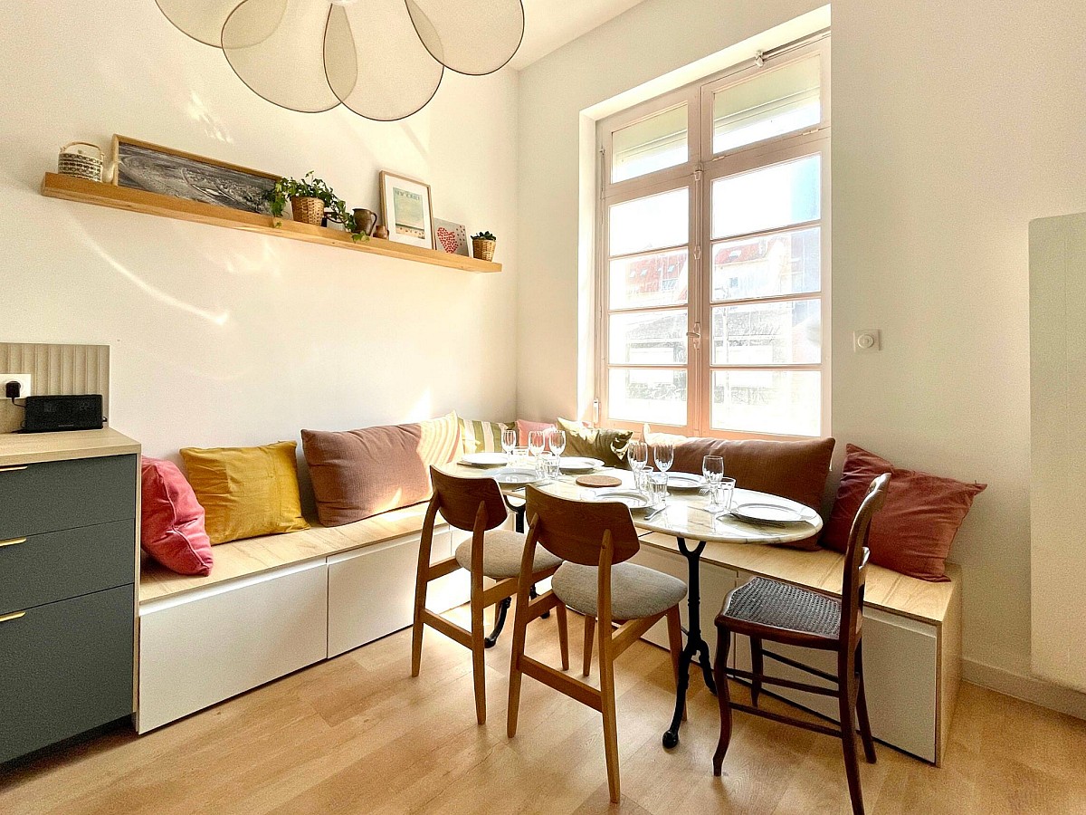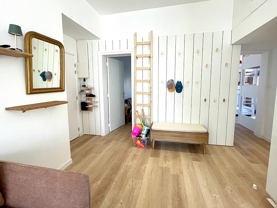 Cet appartement familial de 60 m², rénové en 2023, est situé à 400m de la plage et de l’hyper centre du Touquet (Rue Saint-Jean).