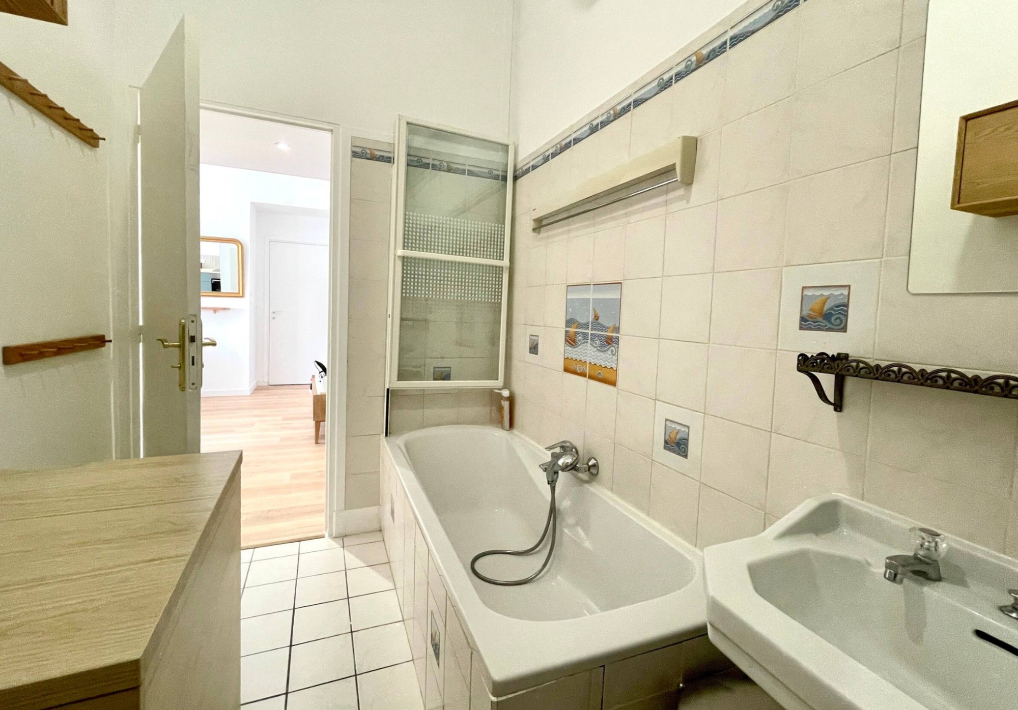 Au 1er étage avec ascenseur d’un ancien hôtel devenu la résidence « Le Carlton », ce logement est très lumineux grâce à sa triple exposition et sa hauteur sous plafond atypique (3,3m).
