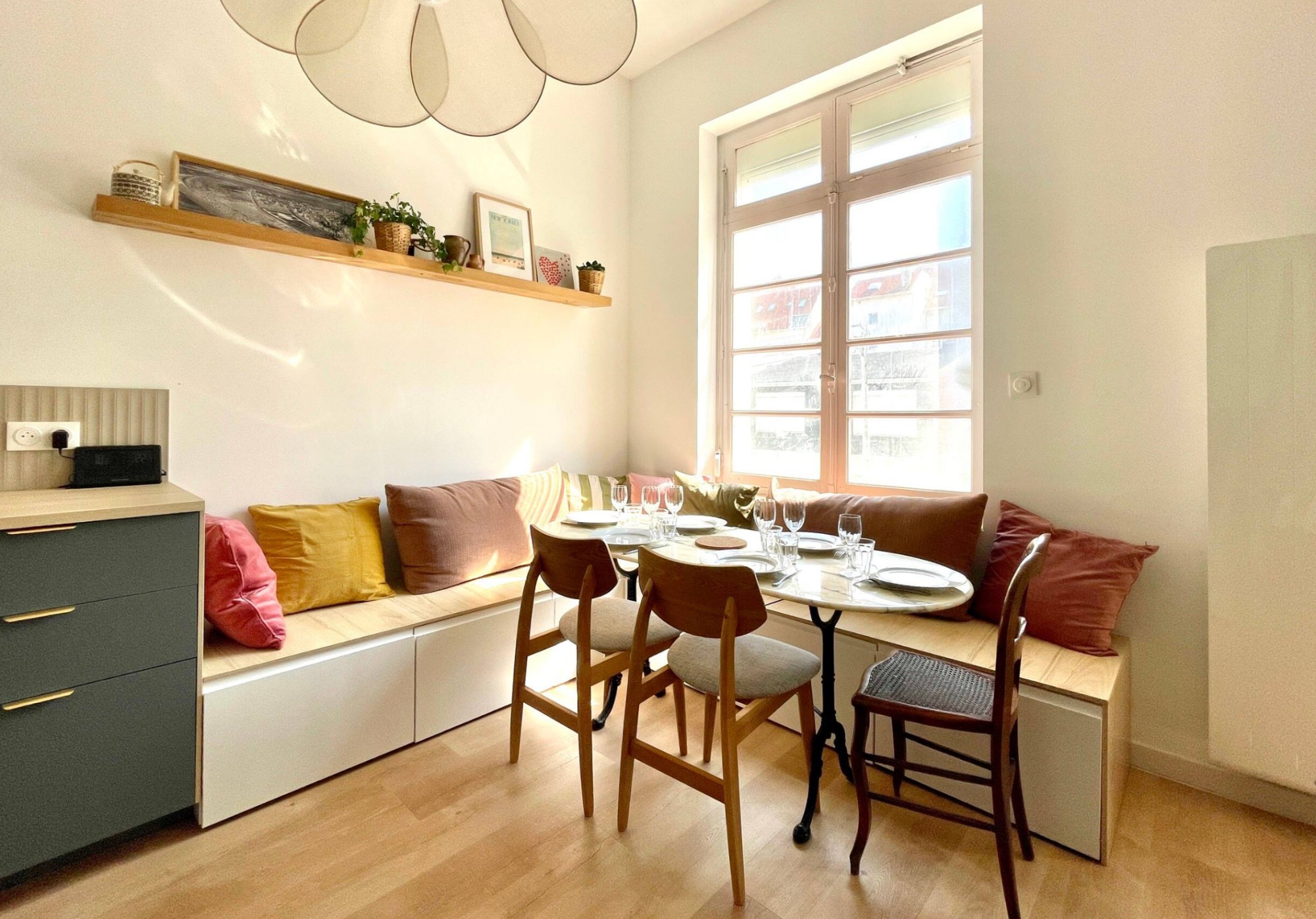- d’un coin repas avec banquette d’angle ;