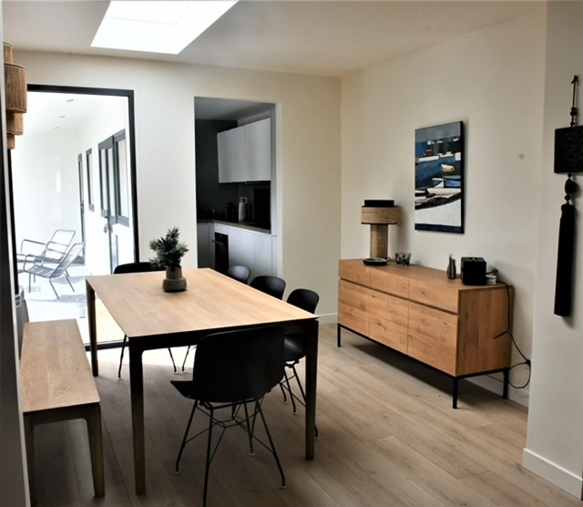 Idéalement située dans un quartier résidentiel calme à proximité de la forêt et de tous commerces, la maison de plein pied et récemment rénovée dispose d’un jardin exposé plein Sud
