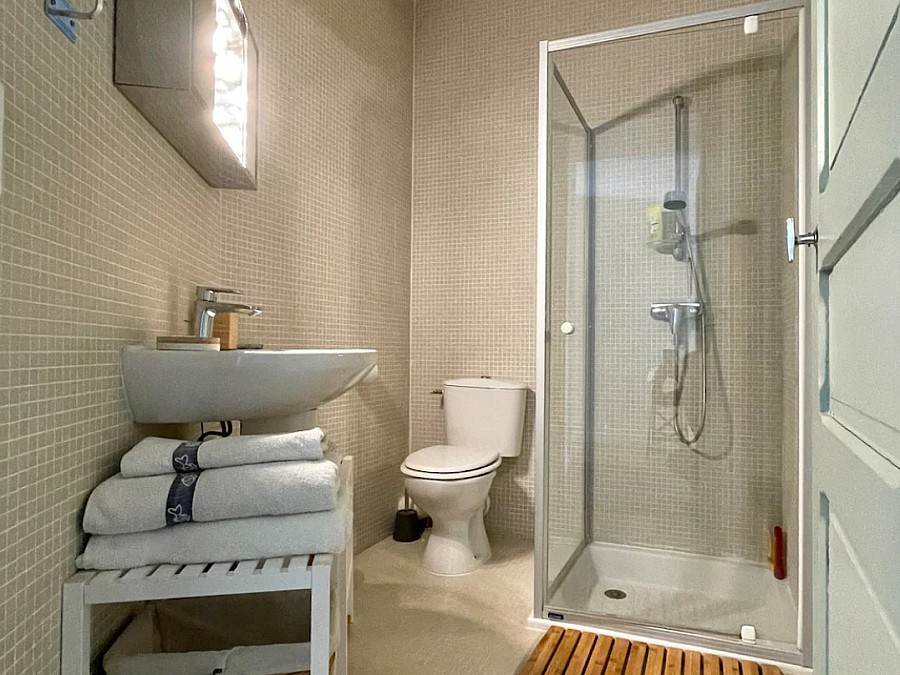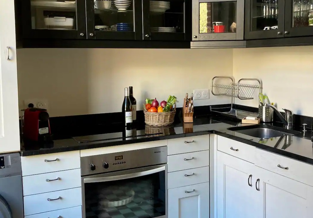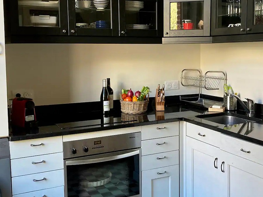 Sa cuisine parfaitement équipée donne directement sur un jardin clos, et vous permet un séjour convivial intérieur/extérieur.