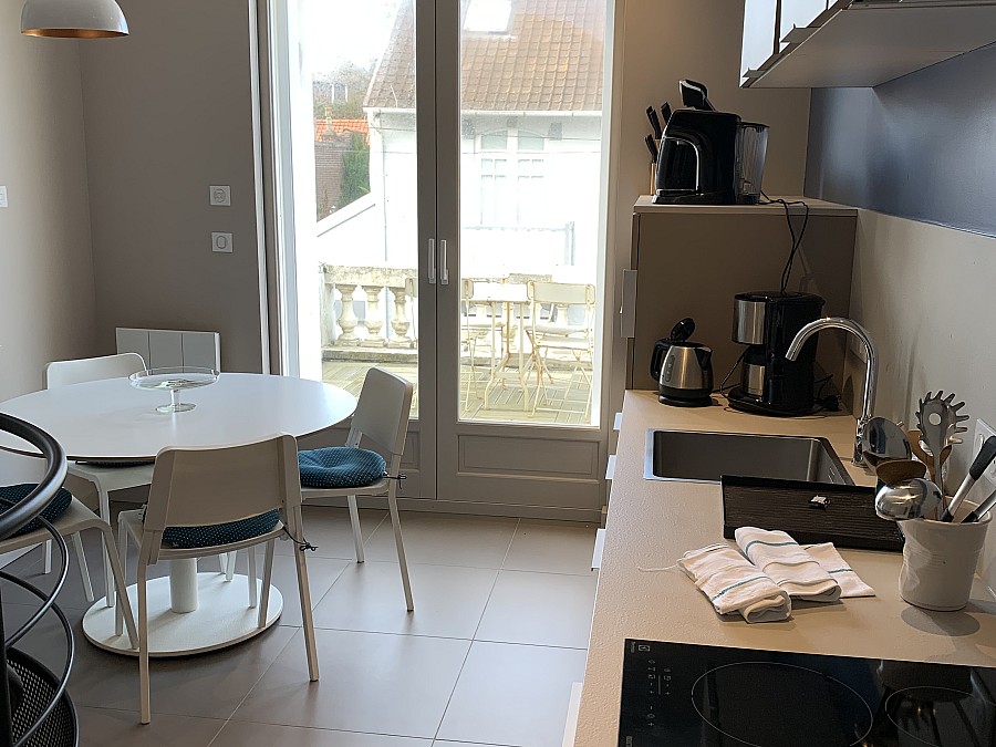 Une cuisine ouverte sur la salle à manger et sur la terrasse ( 12 m2) n'attendent plus que vous pour passer un moment agréable au soleil.